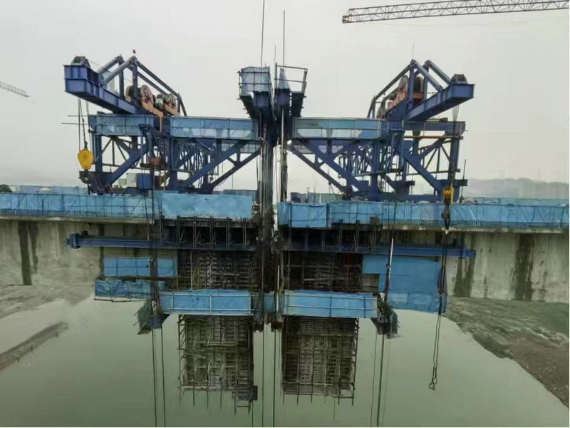 據(jù)悉,廖家溪軌道專用橋位于重慶市沙坪壩區(qū)和兩江新區(qū),全長800米,孔跨布置為150+245+190+130+85,其中P1#、P2#主墩位于江中,水中主墩采用空腹鋼斜撐連續(xù)剛構橋型設計,線路自西向東橫跨嘉陵江,江內采取與上游禮嘉嘉陵江大橋平行對孔設計,兩橋相距約14米。P1#、P2#主墩上部結構下弦梁設計為鋼斜撐,上弦梁設計為預應力混凝土梁,橋面寬13.6米,凈空72米,主跨245米,共分為25個掛籃懸澆節(jié)段。是重慶軌道交通15號線二期控制性、重難點工程,也是實現(xiàn)重慶軌道交通15號線二期順利通車的關鍵線路,具有征拆難、跨度大、凈空高、跨江涉水施工、大體積混凝土澆筑控制及主墩上部結構三角區(qū)施工要求高、組織難度大等特點。(陳流淼 )