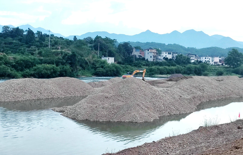 常山江航電4座樞紐均有圍堰,目的是抵御汛期常山江洪峰和上游多座水庫泄洪侵襲,確保導(dǎo)流墻、泄洪閘、發(fā)電站施工順利進(jìn)行。今年7月中旬汛期過后,該項(xiàng)目部組織隊(duì)伍和設(shè)備進(jìn)場施工,按照施工組織設(shè)計(jì)方案,利用就地挖出的泥沙將區(qū)域內(nèi)的常山江大部分隔開來,分層填筑、碾壓,從起初50厘米逐漸增高至3米、6.5米,從兩米長延伸至497.32米、底寬33.7米、頂寬5米的一座三面鄰水的高大圍堰。