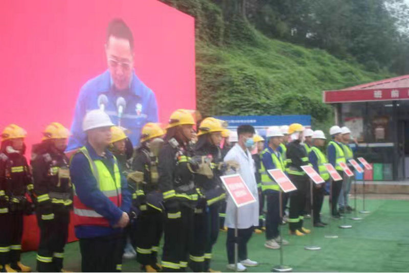項目部施工的中梁山隧道進(jìn)口有毒氣體演練現(xiàn)場