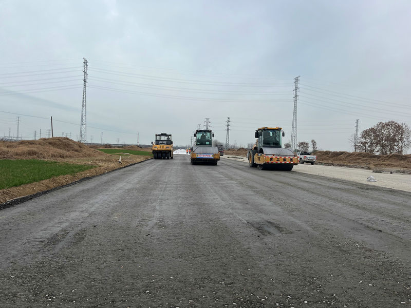(圖說:2024年12月9日安徽固鎮(zhèn)EPC市政項目緯六東路水泥穩(wěn)定碎石右幅下基層攤鋪壓路機碾壓施工,善忠俊攝)