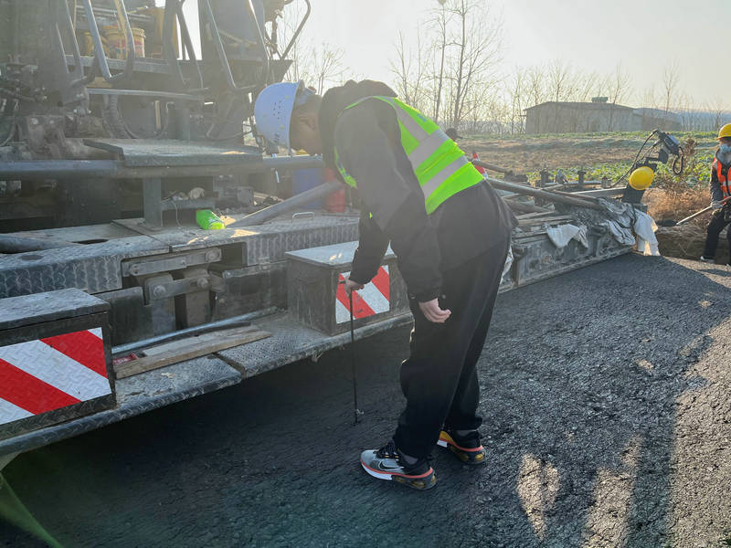 圖說:2024年12月20日安徽固鎮(zhèn)EPC市政項(xiàng)目緯四東路水泥穩(wěn)定碎石下基層攤鋪松鋪厚度檢測 善忠俊攝
