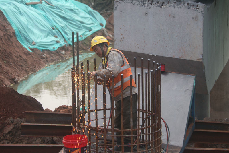 正在閱讀:北新路橋集團(tuán)長(zhǎng)沙分公司滬昆B1標(biāo)項(xiàng)目建筑工人正在焊接