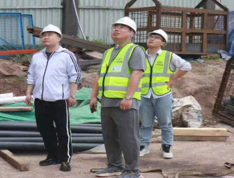 項目經(jīng)理顧賀云(左2)在檢查現(xiàn)場