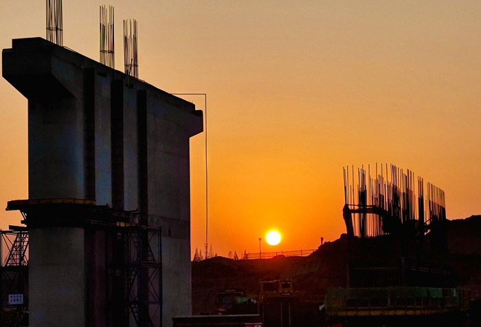 夕陽西下,又到收工時,工地靜悄悄 侯夢雅攝