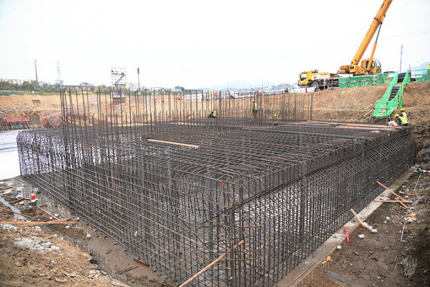 天馬樞紐導(dǎo)流墻底板施工 郝偉亮攝