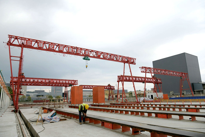 制梁場負(fù)責(zé)人謝梁檢查質(zhì)量 呂奎元攝