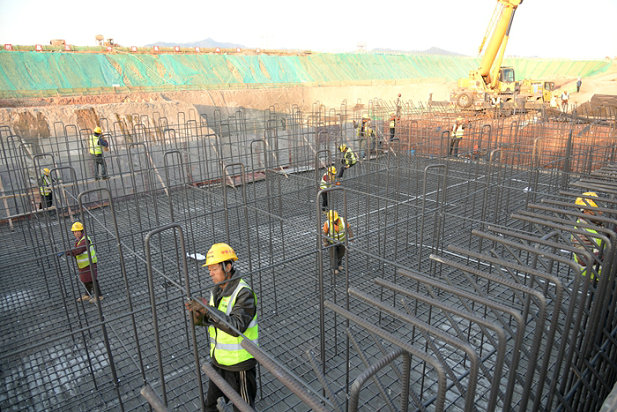 工人在綁扎泄洪閘底板鋼筋籠 劉利攝