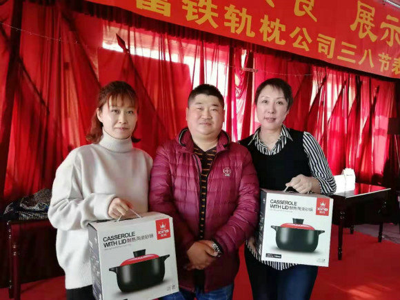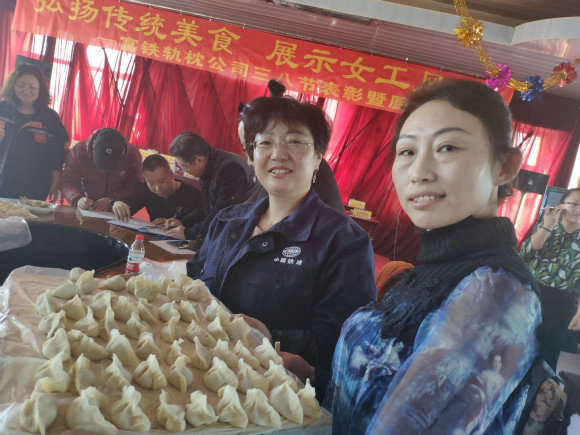 會議伊始,公司工會負責人王輝首先肯定了廣大女職工立足本職,大力弘揚勞模精神、工匠精神,在各自的崗位上為軌枕公司的生產(chǎn)經(jīng)營工作做出的貢獻;其次對參加此次活動并展示廚藝的女工表示感謝。在公司機關(guān)支會負責人邵艷令宣讀完“關(guān)于表彰先進女職工集體 先進女職工個人的通報”獎勵決定并向所有女工表示節(jié)日的祝賀后,王輝宣布進行包餃子比賽。
