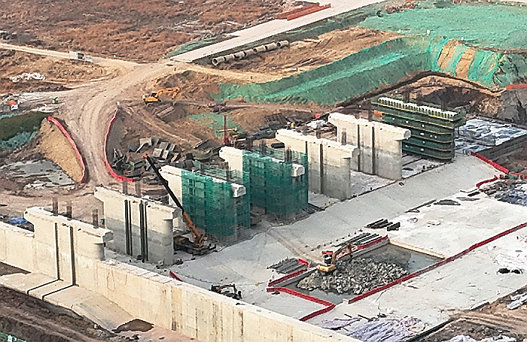 閣底樞紐完工的7個泄洪閘墩 劉利攝