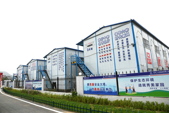 該項(xiàng)目部從完工的杭甬項(xiàng)目調(diào)集一批集裝箱、空調(diào)外,購(gòu)置了嶄新的4棟兩層、2棟1層活動(dòng)房和幾十臺(tái)空調(diào),累計(jì)149間房屋和138臺(tái)空調(diào)用于工人宿舍、食堂。同時(shí)對(duì)駐地房前屋后包括院子進(jìn)行了硬化,還設(shè)有洗衣房、洗漱間、晾衣棚、澡堂、電動(dòng)車(chē)充電處、水沖式衛(wèi)生間。其次統(tǒng)一購(gòu)置了食堂飯桌和凳子,宿舍多數(shù)為單人床,床上被褥、床單由施工隊(duì)配發(fā),設(shè)施齊全,許多工人覺(jué)得比自己家里條件還好。此外有專(zhuān)人打掃公共場(chǎng)所衛(wèi)生,保持社區(qū)公共場(chǎng)所干凈清潔。