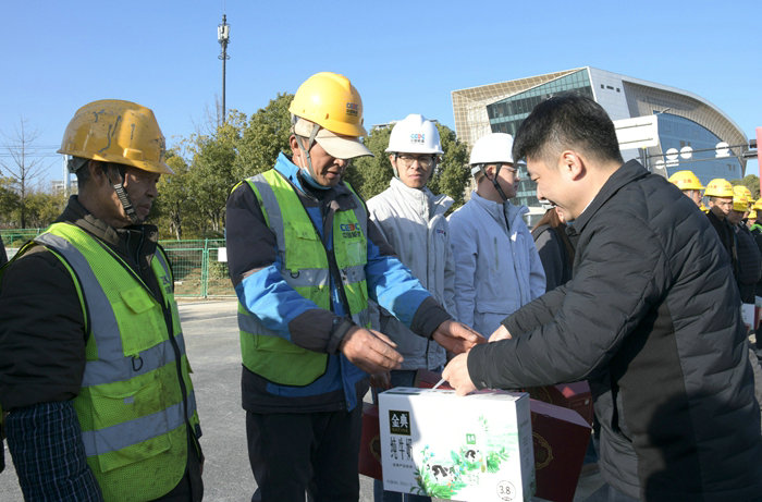 洪棟在常務(wù)副縣長(zhǎng)楊力軍等領(lǐng)導(dǎo)陪同下到二公司常山江航電天馬樞紐工地慰問(wèn)春節(jié)留守工地員工,與員工一一親切握手,并致以節(jié)日的問(wèn)候。他面向自發(fā)前來(lái)歡迎的員工發(fā)表了熱情洋溢的講話(huà),他說(shuō):在蛇年春節(jié)來(lái)臨之際,我代表縣政府來(lái)看望大家,向你們道一聲辛苦了!你們遠(yuǎn)離家鄉(xiāng)親人,春節(jié)堅(jiān)守崗位,為常山江航電樞紐建設(shè)貢獻(xiàn)青春、智慧、才能和汗水,你們是助力常山高質(zhì)量發(fā)展的功臣,我代表縣政府“一班人”感謝你們!春節(jié)期間,你們?nèi)嗽谡憬c家人要多溝通、多交流,把美好的祝福傳遞給家人,讓他們不要牽掛,安心過(guò)年。提醒大家,工地施工要高