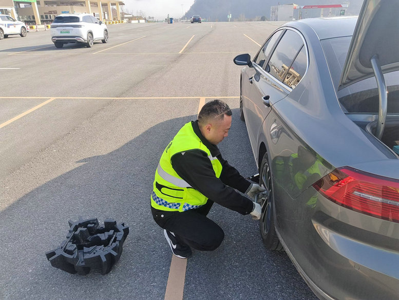 3月3日早,王先生駕駛小轎車從廣平高速唐家河收費(fèi)站駛?cè)敫咚伲局邪l(fā)現(xiàn)左后輪胎急速漏氣、車身出現(xiàn)搖晃、嚴(yán)重影響行駛安全;就近駛?cè)肭帻埡?wù)區(qū),停車與維修店聯(lián)系維修事宜,因路途過遠(yuǎn)、價格過高發(fā)生爭執(zhí)。正在王先生急氣交加之際,巡查至此的何晶上前詢問,在了解情況、檢查故障后,一邊安撫王先生情緒,一邊取出清障車隨車工具,花費(fèi)20多分鐘時間卸下漏氣輪胎、換上備用輪胎。