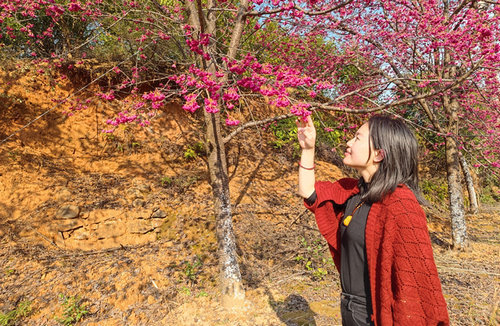 走過天橋,是一片艷麗奪目的梅林,桃紅色的梅花密密麻麻地綴滿枝頭,紅的耀眼,映紅了女職工們的臉頰,真可謂是一處百看不厭的“世外桃源”,風(fēng)景這邊獨好!女職工們又是一輪拍照,手機、相機快門“咔嚓咔嚓”響個沒完,將人與自然交融的美圖定格在一瞬間,分享給遠(yuǎn)方的親人、同學(xué)和朋友。據(jù)了解,每個女職工拍攝的圖片都有幾十張,最多的有100多張,他們恨不得將自己與每一處風(fēng)景都拍下來,留下美好的回憶。