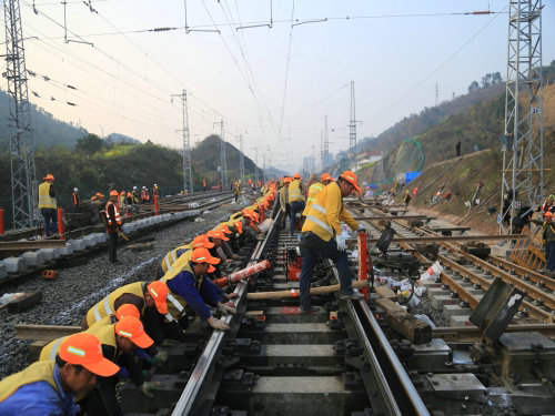 由中鐵一局新運(yùn)公司承擔(dān)的涪秀二線改建鐵路重慶至懷化線、涪陵至梅江段增建二線施工任務(wù),全線正線鋪軌306.16公里,站線鋪軌54公里,架梁885.5孔,鋪道岔236組,鋪砟43.60萬方。