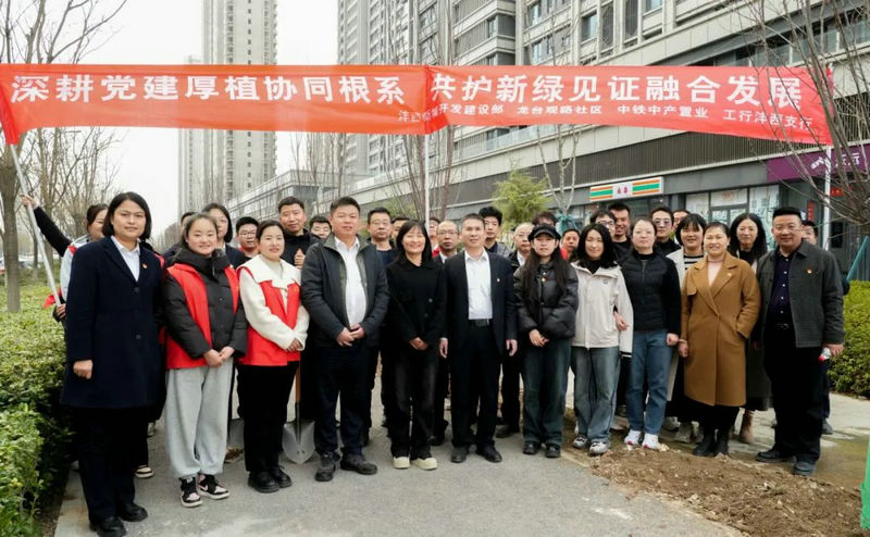 3月12日,中鐵中產(chǎn)置業(yè)公司西安黨支部聯(lián)合西咸新區(qū)灃西新城開發(fā)建設部、龍臺觀路社區(qū)和工行灃西支行黨支部共計40余名黨員,在龍臺觀路社區(qū)開展了“深耕黨建厚植協(xié)同根系,共護新綠見證融合發(fā)展”企地共建植樹活動。