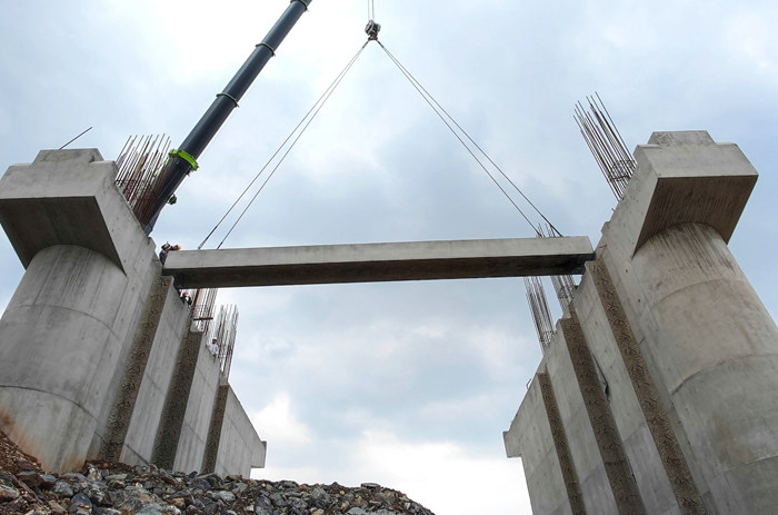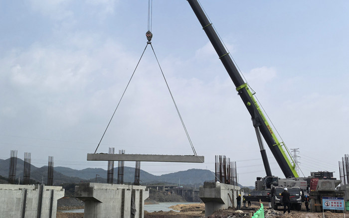 鐵路工程建設(shè)網(wǎng)訊 3月16日上午10點(diǎn)55分,一臺(tái)60噸大吊車將一片23噸的空心板梁從大貨車上吊起,穩(wěn)穩(wěn)地安放在中鐵十五局常山江航電招賢樞紐泄洪閘4—5號(hào)閘墩上,隨之常山江項(xiàng)目拉開(kāi)了架梁施工序幕。