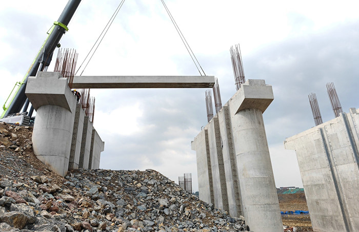 招賢目前導(dǎo)流墻至發(fā)電站之間的泄洪閘8道閘門共88片17米長(zhǎng)的空心板梁,當(dāng)天架梁8片,次日起將以每日超10片的速度向前推進(jìn)。招賢的架梁模式為下一步閣底、白虎灘、天馬架梁提供了寶貴經(jīng)驗(yàn)。