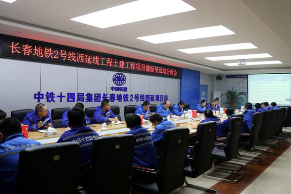 中國鐵路工程建設網(wǎng)訊(通訊員 王福生)3月16日,中鐵十四局集團長春地鐵2號線西延項目部所屬各部室副部長以上人員和工區(qū)經(jīng)理、技術主管以及業(yè)務部室30余人齊聚會議室,參加2019年經(jīng)濟活動分析會,會議由項目負責人周松主持。