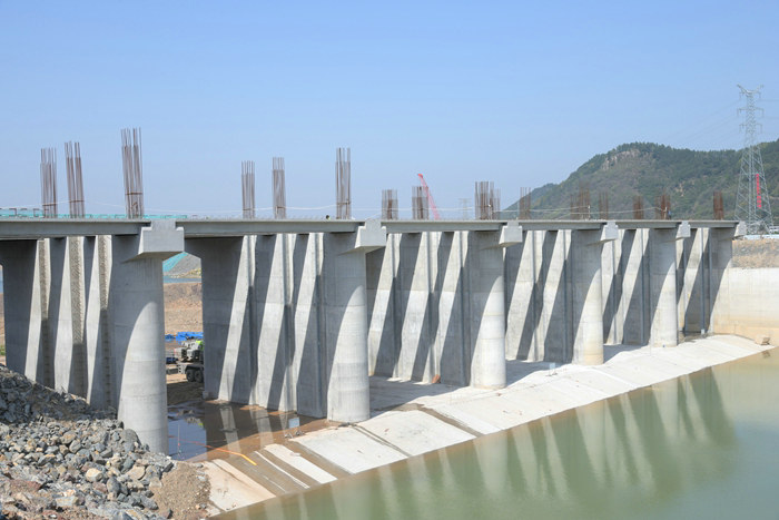 架完梁的頂部將建一座座安裝啟閉機(jī)的小房子 劉利攝