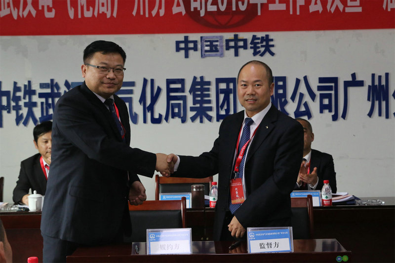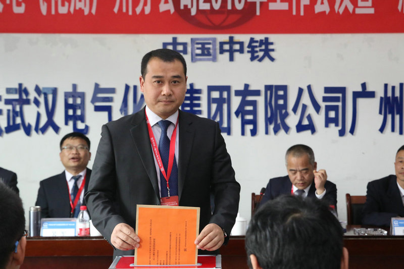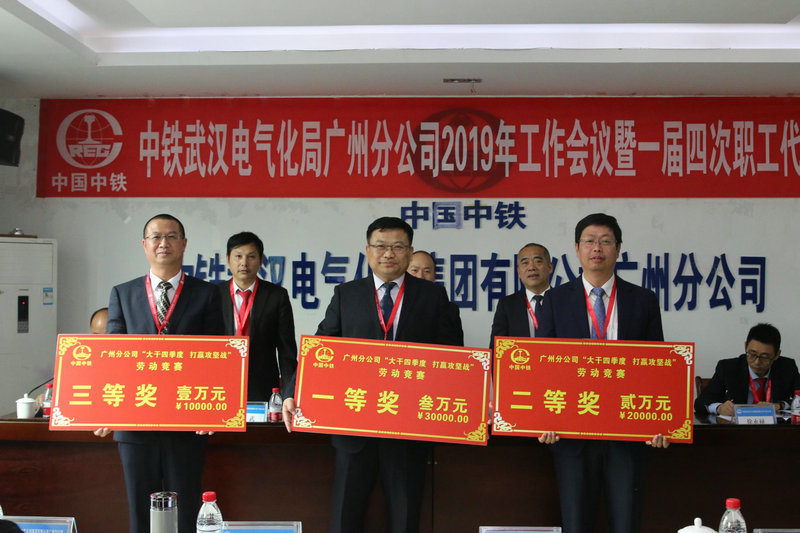 16日下午,中鐵武漢電氣化局廣州分公司2019年工作會(huì)暨一屆四次職工代表大會(huì)在中國(guó)中鐵司歌《開(kāi)路先鋒》歌聲中勝利閉幕。