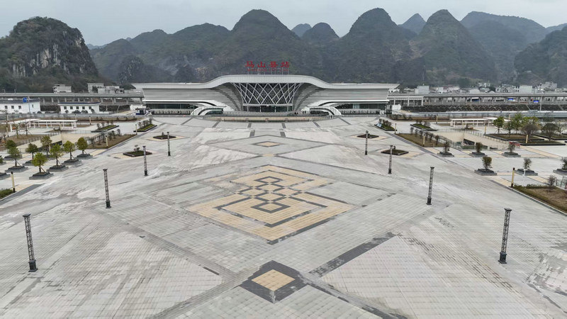 會(huì)鼓造型展壯鄉(xiāng)風(fēng)采 馬山高鐵站站前廣場竣工具備文旅融合新地標(biāo)