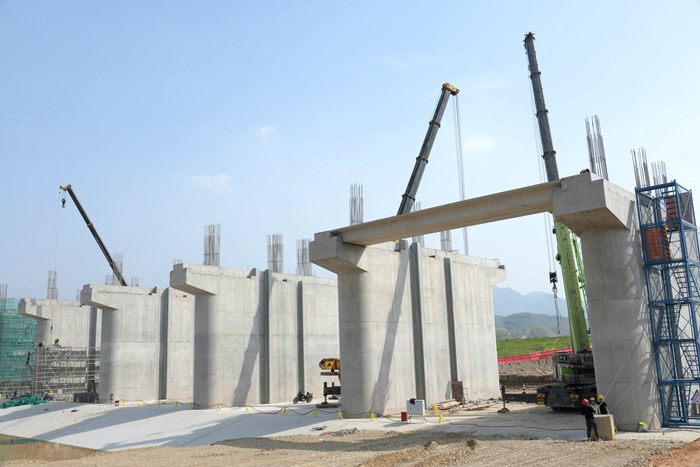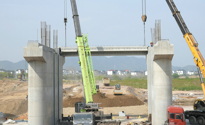 第一片梁架在4—5號墩柱上 劉利攝