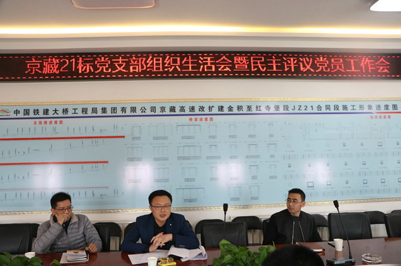 3月19日下午,中鐵建大橋工程局集團西北公司京藏21標召開2018年度黨支部組織生活會。項目黨建工作聯(lián)系點領(lǐng)導(dǎo)、公司副總經(jīng)理姜喜東,黨群工作部部長史少龍,紀檢監(jiān)察部部長、團委書記高健華到會督導(dǎo),會議由項目黨支部副書記劉德舉主持召開。