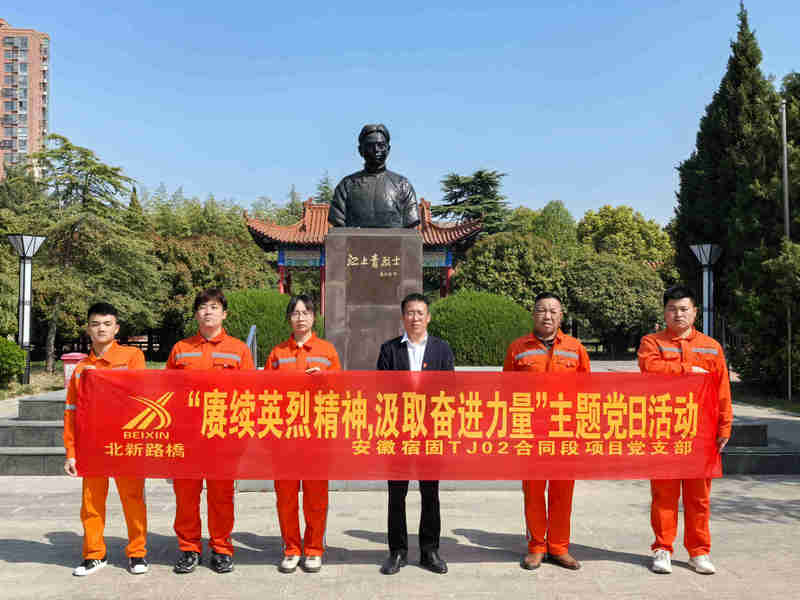宿州訊(通訊員 劉繼紅)為緬懷革命先烈,傳承紅色基因,進(jìn)一步增強(qiáng)項(xiàng)目黨支部的凝聚力和戰(zhàn)斗力,激發(fā)黨員干部的愛國熱情和奮斗精神,4月2日,北新路橋集團(tuán)兵團(tuán)交建公司安徽宿固TJ02合同段項(xiàng)目組黨支部近日精心組織開展“賡續(xù)英烈精神,汲取奮進(jìn)力量”主題黨日活動(dòng)。?