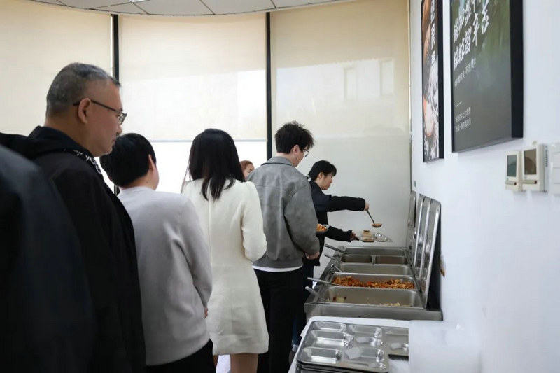 推開改造后的員工餐廳大門,窗明幾凈,寬敞舒適,正午的光影灑在餐桌上,映照著桌面的花鮮活亮麗;打餐區(qū)的餐食熱氣騰騰,員工們?cè)僖膊挥脫?dān)心錯(cuò)過(guò)熱乎飯菜;東坡肉、紅燒魚塊、香酥大蝦輪番登場(chǎng),豆沙包、打鹵面、豬肉水餃多滋多味,滿足了大家的味蕾;新增的“共享調(diào)料角”、餐桌墊、提倡光盤行動(dòng)的墻面裝飾、限定的節(jié)令美食,更讓日常用餐多了些許色彩和溫度。