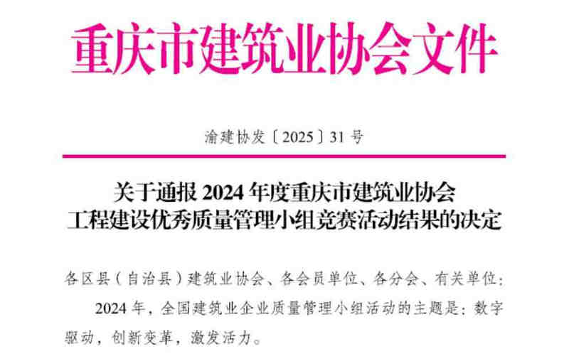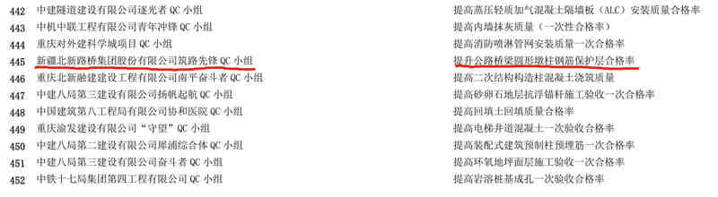烏魯木齊訊(通訊員 雒煥鼎)近日,重慶市建筑業(yè)協(xié)會公布2024年度工程建設(shè)優(yōu)秀質(zhì)量管理小組競賽活動結(jié)果,北新投資公司重慶雙錢高速土建二標段QC小組憑借《提升公路橋梁圓形墩柱鋼筋保護層合格率》課題從千余項申報成果中脫穎而出,榮獲Ⅱ類成果獎。
