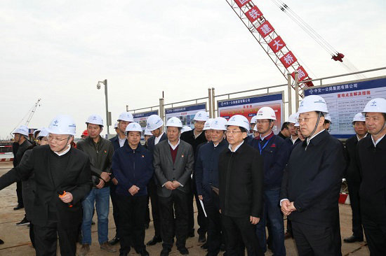 4月1日下午,福建省省委書記于偉國、省長唐登杰等領(lǐng)導(dǎo)一行蒞臨中國鐵建大橋局福廈鐵路一分部安海灣特大橋進(jìn)行工作調(diào)研。泉州市副市長呂剛向領(lǐng)導(dǎo)們簡要匯報了項目概況、施工進(jìn)度、安海灣特大橋施工特點等情況。福建省省委常委、常務(wù)副省長、黨組副書記張志南,以及省委、省政府有關(guān)領(lǐng)導(dǎo)、泉州市委、市政府有關(guān)領(lǐng)導(dǎo)隨行進(jìn)行了調(diào)研。