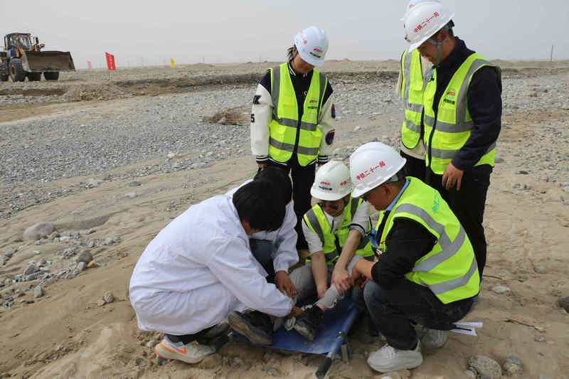 此次演練“劇情”逼真!模擬持續(xù)強降雨導致施工現(xiàn)場水位猛漲,河水肆意漫溢,施工區(qū)域與人員安全岌岌可危。警報拉響,項目部迅速“入戲”,即刻啟動防洪防汛應急預案。搶險救援組、醫(yī)療救護組、后勤保障組等應急“小分隊”火速集結,奔赴“險情”現(xiàn)場。搶險救援組化身“沙袋超人”,快速裝填沙袋,筑起堅固防洪堤壩,全力抵御洪水“進攻”;醫(yī)療救護組嚴陣以待,隨時準備為受傷人員“保駕護航”;后勤保障組則變身“物資調度員”,保障救援物資供應調配有條不紊。整個演練現(xiàn)場緊張有序,各小組配合默契,嚴格按照應急預案流程操作,成功“化解危機”,交出了一份亮眼的防汛“答卷”。
