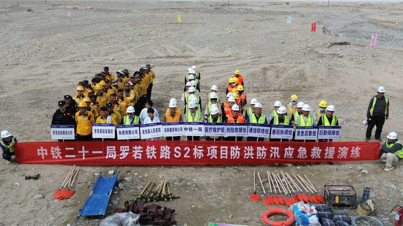 汛情就是命令,實戰(zhàn)筑牢防線!2025年4月25日,一場緊張刺激的防洪防汛應急“實戰(zhàn)大片”在中鐵二十一局羅若鐵路S2標項目米蘭河特大橋精彩“上映”。來自建設、監(jiān)理、設備管理及施工單位的70余人化身“防汛戰(zhàn)士”,以高標準、嚴要求檢驗防汛應急處置能力,為汛期施工安全撐起“保護傘”。
