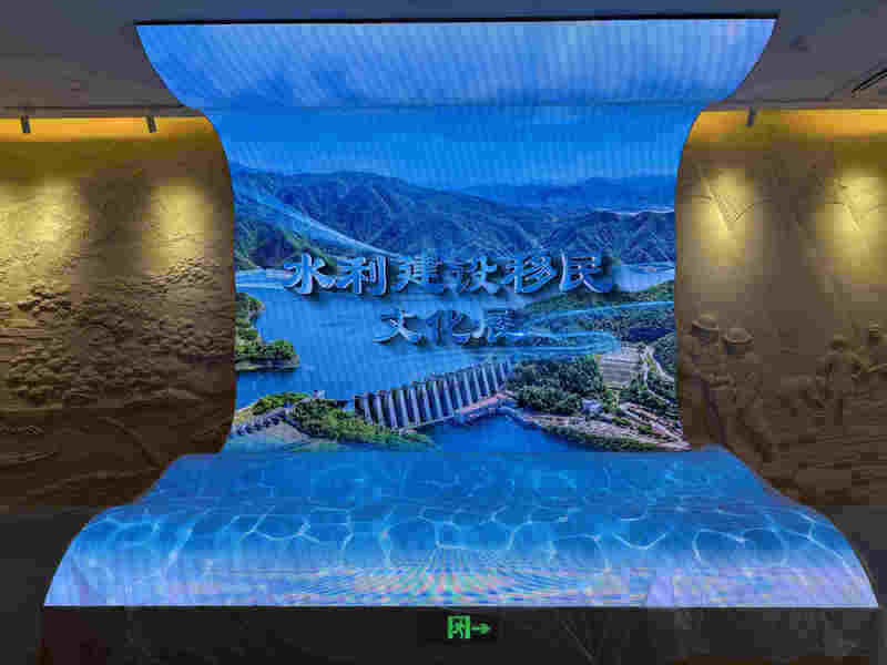 走進這座由老倉庫改造的展館,曲面LED屏與主題浮雕交相輝映,瞬間將觀眾帶入歷史長河。老照片、文物檔案搭配透明屏虛擬解說、全息影像,生動再現(xiàn)當年“一定要把淮河修好”的壯闊場景。透過半景畫投影和沉浸式互動,參觀者能真切感受到十萬庫區(qū)群眾告別故土、支援國家建設的奉獻情懷。