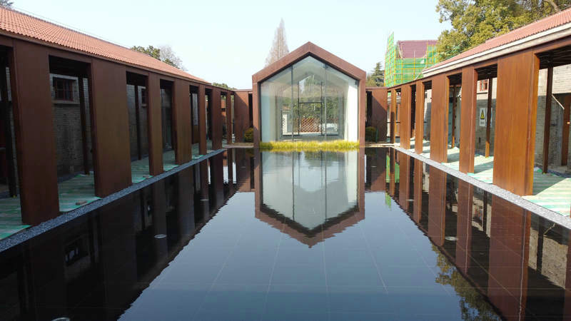 改造工程堪稱一場“時空對話”。中鐵二十一局建設團隊秉持"修舊如舊"理念,既加固墻體、完善消防等現(xiàn)代設施,又保留灰磚墻紅頂瓦的年代質感。別具匠心的連廊設計、開山工形象雕塑與玻璃幕墻相映成趣,讓歷史與現(xiàn)代在此交融。