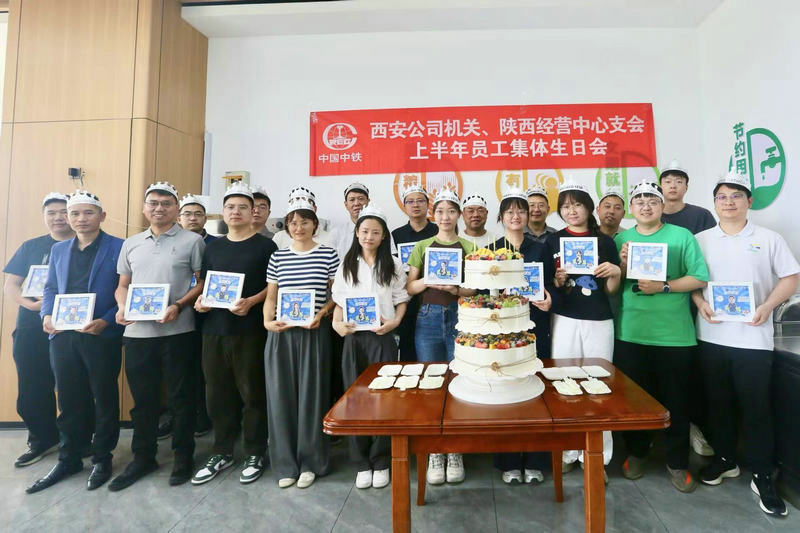 5月13日臨近中午時分,中鐵物貿(mào)集團西安有限公司本部食堂中人頭攢動,一場別開生面的集體生日會正在舉行,來自機關本部和中心的27名上半年過生日的同事帶著生日帽,對著蛋糕許諾生日愿望。