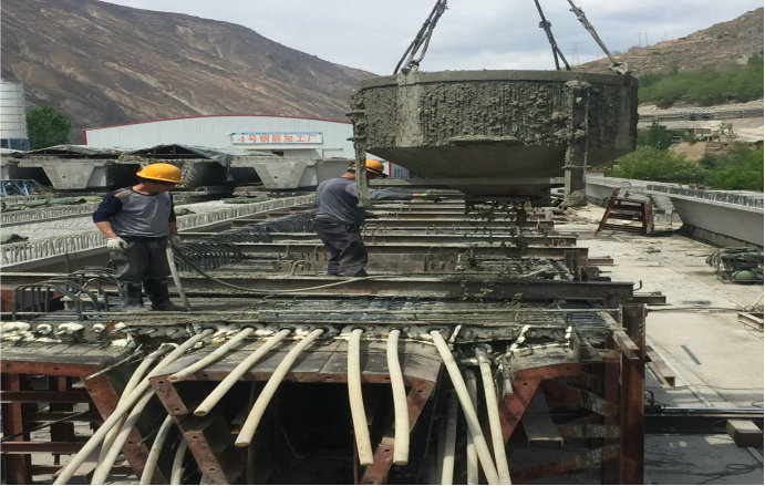 渭武十九標項目位于隴南市宕昌縣境內(nèi),全線橋梁9.96km,項目承擔2681片后張法預(yù)應(yīng)力混凝土箱梁的預(yù)制任務(wù),其中雙線箱梁2533片,單線箱梁148片,預(yù)制箱梁數(shù)量在渭武高速公路隴南段位列第一,在甘肅高速公路建設(shè)歷史上也居于前列。