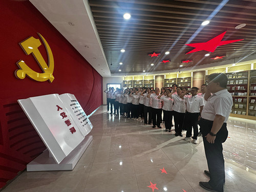 活動(dòng)首先在承載紅色記憶的圖書館“紅書房”開啟,全體黨員握舉右拳重溫入黨誓詞:“我志愿加入中國(guó)共產(chǎn)黨……”,鏗鏘有力的誓詞,表達(dá)了對(duì)黨的忠誠(chéng)和為共產(chǎn)主義事業(yè)奮斗終身的堅(jiān)定信念。