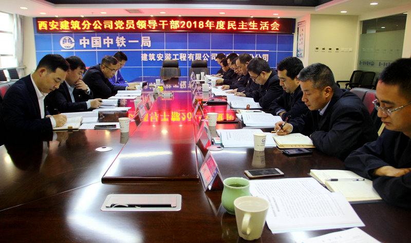 (西安訊)4月13日,中鐵一局建安公司西安建筑分公司黨總支2018年度黨員領(lǐng)導(dǎo)干部民主生活會在分公司會議室召開,中鐵一建建安公司黨委書記、執(zhí)行董事張鵬茂參加,紀委副書記、紀委監(jiān)察部部長孫學(xué)民,黨委組織部部長王平,黨委干部部部長孫利到會指導(dǎo)。會議由西安建筑分公司黨總支書記屈新升主持,分公司9名領(lǐng)導(dǎo)班子成員參加會議。