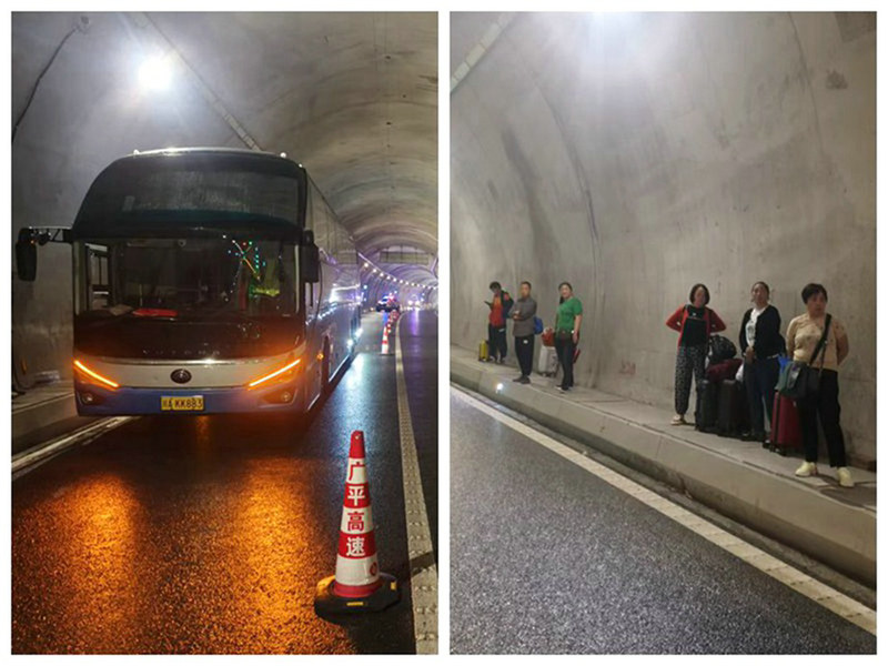 當日15時25分,一輛長途客車在駛入柴嶺里隧道約400米處突發(fā)故障拋錨,停在了貨車道,司機在開啟危險報警閃光燈后撥打了廣平高速救援電話和所屬公司電話(要求調派轉運車輛)。