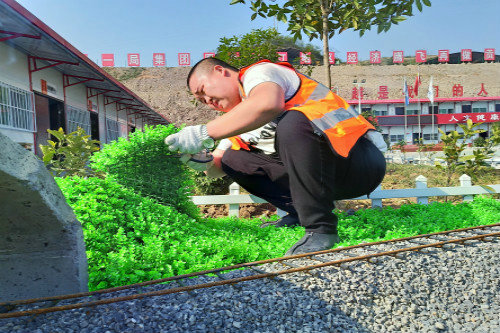 陽春四月天里,伴著輕松歡快的勞動主題歌曲,中鐵一局新運(yùn)涪秀二線項(xiàng)目部的大院里一派繁忙,該項(xiàng)目部的青工們個個精神抖擻,整裝待發(fā)。他們手持各式各樣的“法寶”“兵器”,在經(jīng)過4個多小時的“施法作戰(zhàn)”后,腐銹的鋼軌護(hù)欄,青灰的水泥路面,零散的臺球桌案秒變新顏,項(xiàng)目家園再次煥發(fā)了新活力。