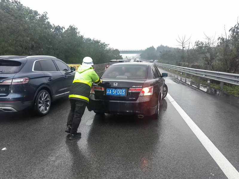 2025年1月31春節(jié)小長(zhǎng)假第四天上午,渝長(zhǎng)復(fù)線高速在車流量高于日常的基礎(chǔ)上,出城方向長(zhǎng)梁互通車流量逐漸增加,擁堵路段約1.3公里。監(jiān)控員雷懿將此情況告知路巡隊(duì)員,并密切關(guān)注該路段車流量情況,當(dāng)班巡查隊(duì)員包安泰和楊洋得知情況后,立即前往長(zhǎng)梁互通駐點(diǎn)。當(dāng)巡查到該路段附近時(shí),看見一輛黑色小車占第二車道停放。根據(jù)多年巡查工作經(jīng)驗(yàn),包安泰和楊洋認(rèn)識(shí)到該車輛屬于故障車輛,隨即立刻上前詢問(wèn)后得知,該車輛確實(shí)需要救援。面對(duì)逐漸增加的車流量,該車占道會(huì)導(dǎo)致后方積壓車輛越來(lái)越多,在與車方溝通確定后,兩人將車輛推移至應(yīng)急車道上,等待救援車輛,及時(shí)化解了該路段的擁堵狀況。