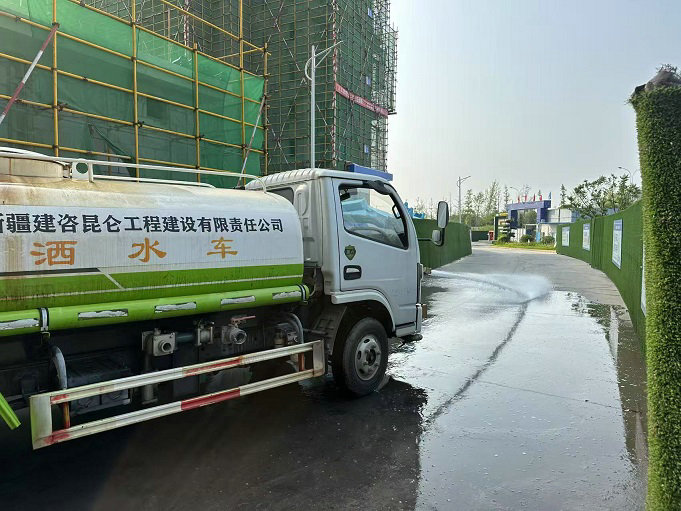 走進(jìn)項目施工現(xiàn)場,“六化”標(biāo)準(zhǔn)的落地成效清晰可見:3米高的硬質(zhì)圍擋連續(xù)閉合,頂部噴淋系統(tǒng)定時啟動形成白色霧障;裸土與建筑材料被密目防塵網(wǎng)全面覆蓋,如同為場地披上綠色外衣;混凝土硬化的施工道路平坦整潔,車輛駛過不見揚塵;出入口的自動化洗車槽內(nèi),高壓水槍正對駛離車輛進(jìn)行全方位沖洗,確保“凈身出戶”;塔吊噴淋、移動霧炮車與周邊噴淋裝置組成立體降塵網(wǎng)絡(luò),可根據(jù) PM2.5 數(shù)據(jù)智能啟停;建筑垃圾分類存放于密閉容器,由專用車輛每日清運。