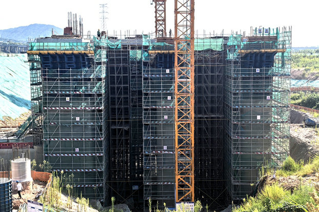 招賢電站進(jìn)水口端3面墩墻是整座電站結(jié)構(gòu)的重要組成部分,下一步將在頂部安裝閘門、啟閉機(jī)等設(shè)備。該電站主體工程預(yù)計(jì)明年底完成。