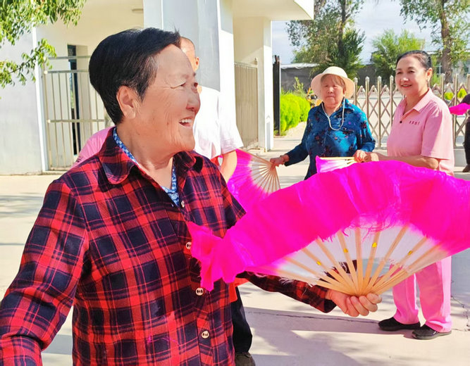 奇臺訊(通訊員:王學(xué)明 報道)8月25日下午,六師奇臺110社區(qū)吾家樂寶養(yǎng)老院內(nèi),秋高氣爽,陽光明媚。在院的爺爺、奶奶們,與員工們扭起大秧歌,揮舞紅綢扇,興高采烈,歡歌笑語,用輕盈矯健的舞步告訴在場的人們“我們不老,還很年輕”。