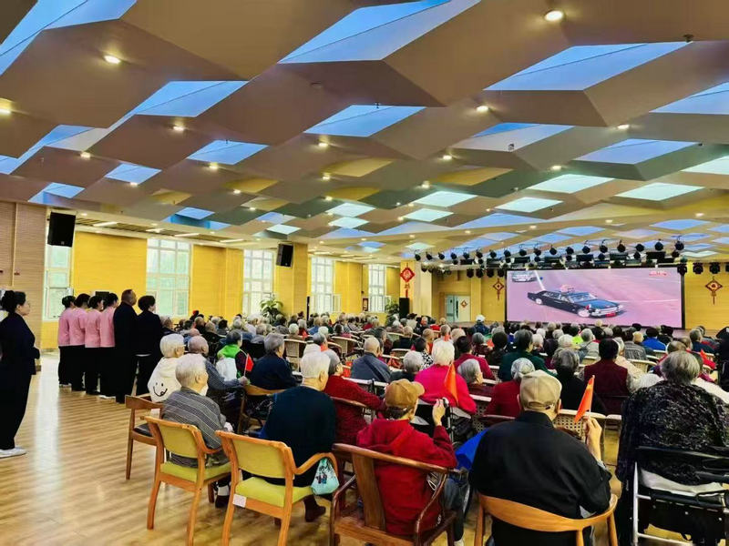 早餐過后,老人們便懷著激動的心情早早來到小鎮(zhèn)禮堂。有的老人在工作人員的攙扶下緩緩入座,有的則相互交流著對閱兵儀式的期待,禮堂內(nèi)處處洋溢著期待與莊重的氛圍。