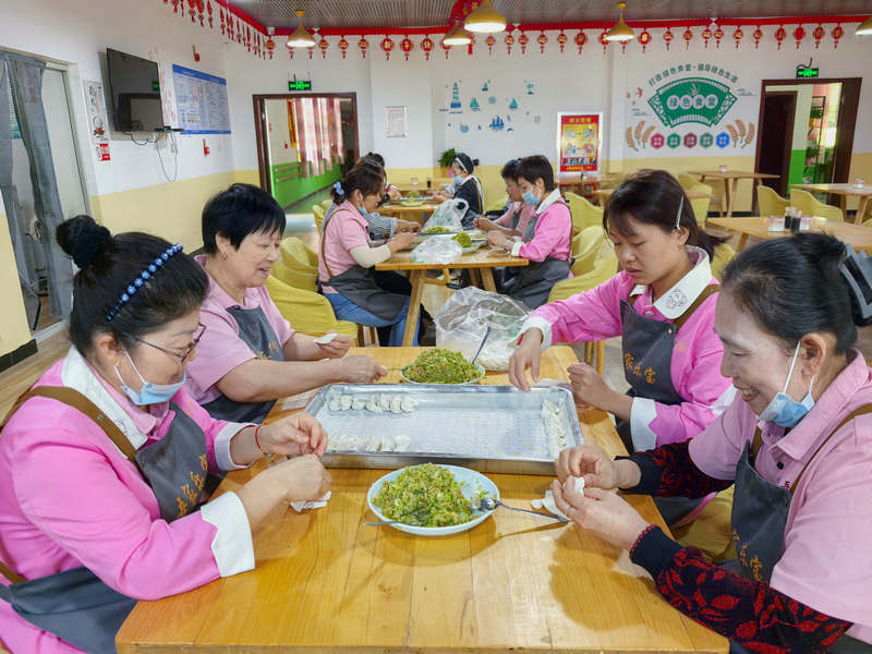 在包餃子的過程中,大家分工明確,配合默契。有人負(fù)責(zé)包餡,有人負(fù)責(zé)捏褶,現(xiàn)場氣氛熱鬧而溫馨。工作人員還不時與老人們互動,教他們包餃子的技巧,老人們學(xué)得認(rèn)真,臉上洋溢著幸福的笑容。金華奶奶開心地說:“好久沒有這么熱鬧了,感覺就像回到了家里一樣。”