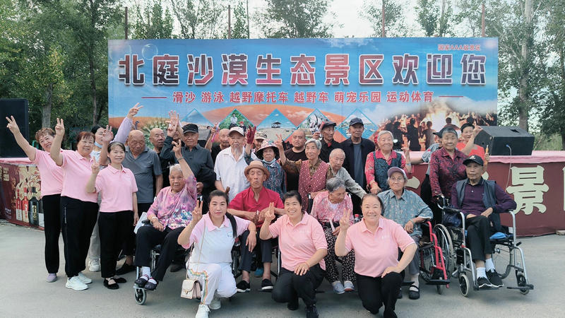 當(dāng)月光漫過連綿沙丘,活動接近尾聲。老人們圍坐篝火旁,你一言我一語分享著過往故事,護(hù)理員們靜靜聆聽,偶爾為老人添上一杯熱水。這場沙漠中的“青春之約”,不僅讓老人們重溫了舊日浪漫,更讓所有人感受到:快樂從不會被歲月帶走,它會化作掌心的溫度、耳邊的歌聲,在每一個溫暖瞬間靜靜綻放。