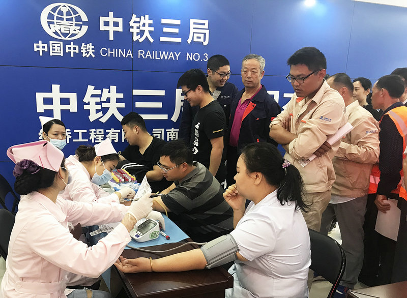 本報南寧訊(通訊員 譚振龍 王敏)4月16日,美年大健康體檢中心專車開進中鐵三局線橋公司南寧地鐵4號線項目駐地,為駐地100多名員工開展健康體檢活動,標(biāo)志著中鐵三局線橋公司南寧地鐵4號線項目“情系員工 健康進工地”體檢活動正式開始。