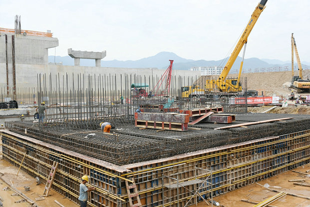 目前招賢樞紐泄洪閘二期、閘首橋、電站主廠房和出水口遍地開(kāi)花,各種機(jī)械的馬達(dá)聲轟鳴聲響徹整個(gè)工地,預(yù)計(jì)春節(jié)前完成泄洪閘9個(gè)閘墩、鋪蓋、護(hù)坦、消力池、閘首橋墩身和架梁任務(wù)。